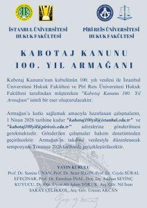To mark the 100th anniversary of the adoption of the Cabotage Law, Piri Reis University Faculty of Law and Istanbul University Faculty of Law will jointly publish a work entitled ‘Cabotage Law 100th Anniversary Commemorative Publication’. Those wishing to contribute to the tribute may submit their work by 1 April 2026 to the email addresses ‘kabotaj100yil@istanbul.edu.tr’ and ‘kabotaj100yil@pirireis.edu.tr’.
