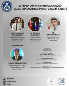 09.12.2025 tarihinde Üniversitemiz Deniz Kampüsünde ” 10 Aralık Dünya İnsan Hakları Günü Savaş Dönemlerinde İnsan Hakları İhlalleri” adlı etkinlik gerçekleştirilmiştir.